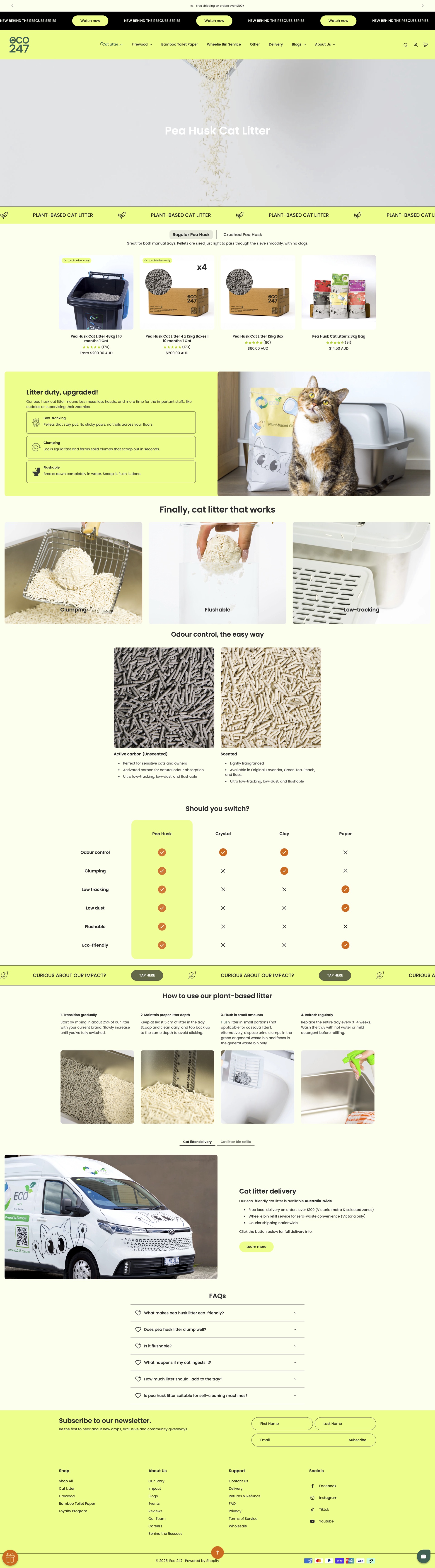 - Rewriting product pages to clearly articulate Eco247’s sustainability story
